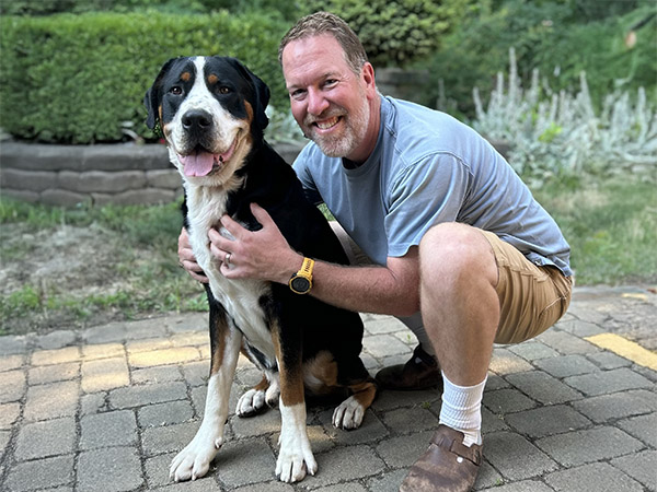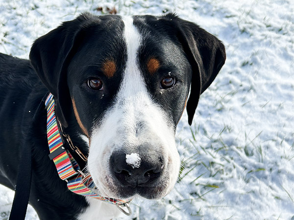 Otto was instantly welcomed into his new home by his older swissy “sister” Bertha and they have been incredible playmates and the best of friends ever since. Otto allows Bertha to take the lead in their relationship and is quick to be by her side for whatever she wants to do. Otto’s confidence allows him to engage with other dogs and humans warmly; all he really wants in life is to be cuddled and have somewhere to lean.