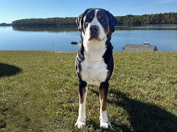 Otto was instantly welcomed into his new home by his older swissy “sister” Bertha and they have been incredible playmates and the best of friends ever since. Otto allows Bertha to take the lead in their relationship and is quick to be by her side for whatever she wants to do. Otto’s confidence allows him to engage with other dogs and humans warmly; all he really wants in life is to be cuddled and have somewhere to lean.